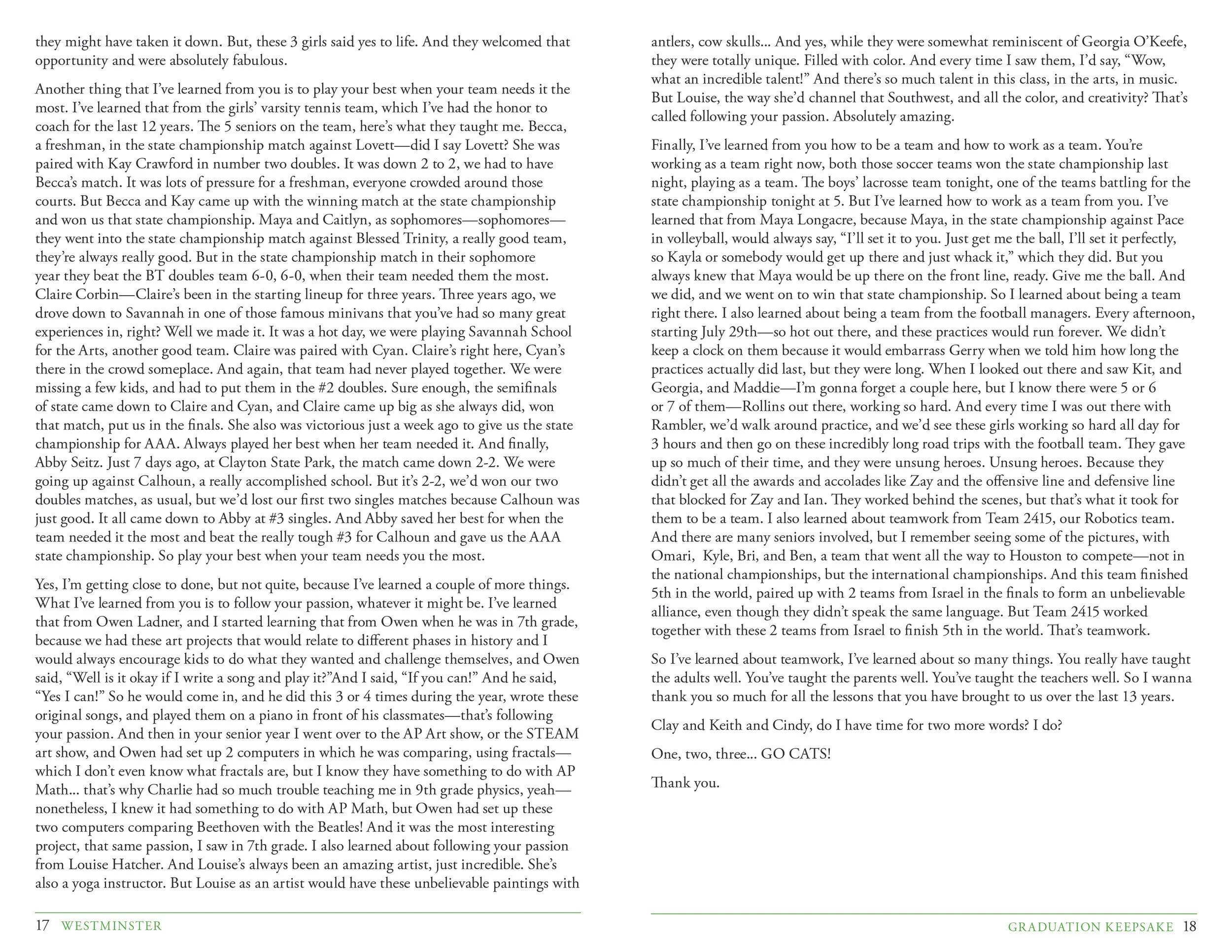 This Keepsake is pamphlet that is sent out to all graduation seniors to give them a memory of their entire graduation journey. Featured are speeches from valedictorians, the graduation speaker, as well as a map of the colleges the seniors are attending. Graduation Keepsake was designed and developed by Ria Parikh.